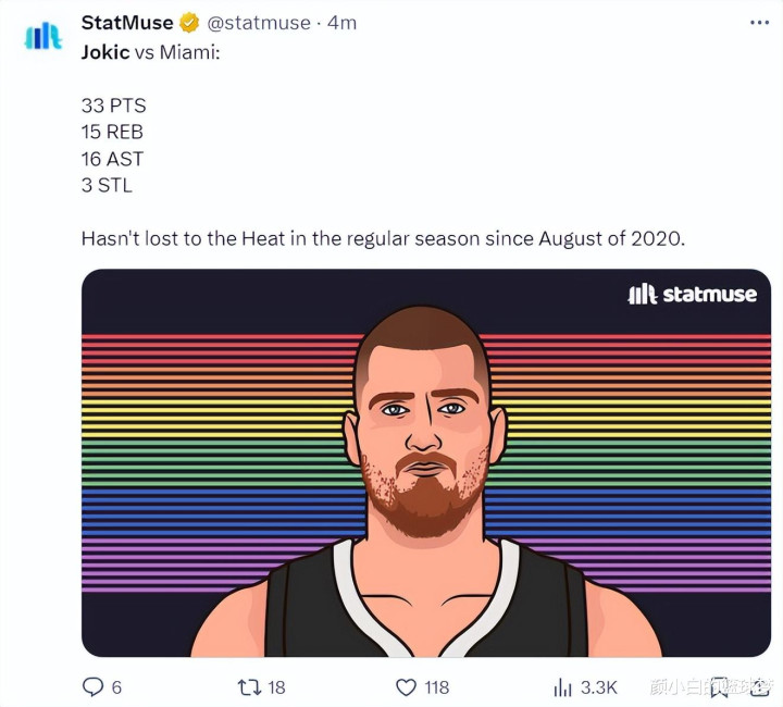 6.自2020年8月以来约基奇VS热火还没有输过球;