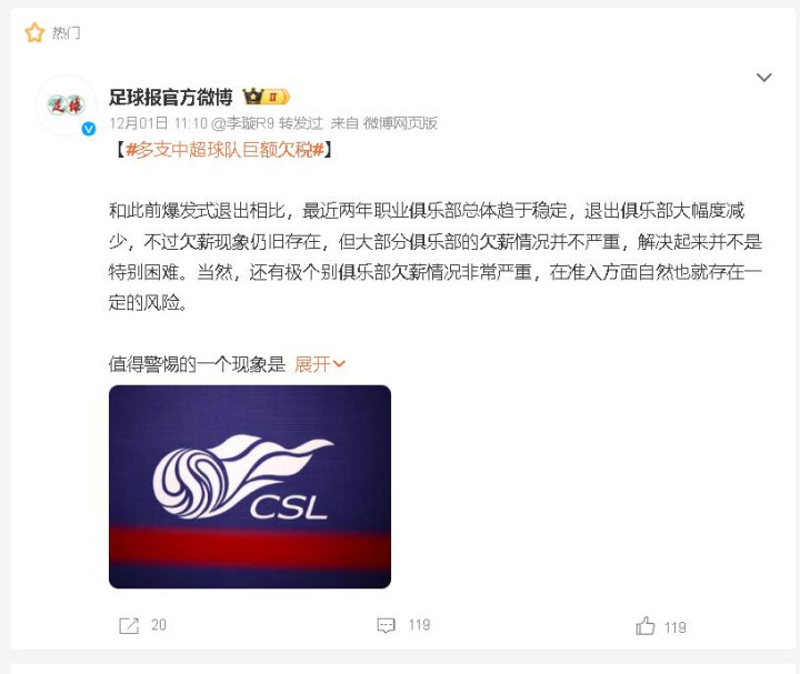 最近,中超联赛又上热搜了!不过这次不是因为夺冠,也不是因为争议判罚,而是因为一则更扎心的消息,多支中超球队被曝“亿元级欠税”!欠薪还没解决完,现在连税都敢欠了?中国足球这是要“破罐破摔”吗?如何看待这个问题?